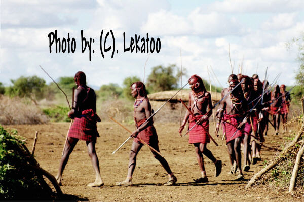 Nach einer Zeit bekamen Naiteru-Kop und seine Frau drei Söhne und drei Töchter. Der erste Sohn wuchs auf und ihn wurde Bogen und Pfeil gegeben, also konnte er somit seinen Lebensunterhalt von der Jagd bestreiten. Er wurde ein Jäger. Der zweite Sohn bekam eine Hacke und wurde ein Landwirt. Dem letzten Sohn, der der Liebling seines Vaters war, erhielt eine Stange, mit der er zunächst das Vieh seines Vaters hütete. Der Sohn übernahm die Herden und lebte mit ihnen in Einklang der Natur. Naiteru-Kops letzter Sohn, wird folglich geglaubt, sei der sofortige Nachkomme der Maasai. Die Maasai, die als Krieger nun die endlosen Ebenen von Südkenia und von Nordtansania in Ostafrika durchstreifen. Diese Geschichte wird von den Maasai von Generation zu Generation erzählt und somit weitergeleitet. Sie erklärt, dass die Maasai in Koexistenz mit der Natur leben und ihre Zugehörigkeit zum Vieh als Quelle der Nahrung und der Lebenserfüllung darstellt. Die Geschichte der Maasai Es gibt eine Fülle von Vermutungen, woher die Maasai kamen, und von welchem Volk sie abstammten. Einige Forscher sagen, dass sie einer der verlorenen Stämme von Israel sind. Andere, dass sie aus Nordafrika kamen. Und dann gibt es noch die These, dass sie von der ägyptischen Zivilisation abstammen, Gründe hierfür sind die geflochtenen Haare der Maasai Krieger. Welche der Theorien stimmt, kann man nicht belegen. Vielleicht ist es so, dass die alten Kulturen von Ägypten und von Israel von den Vorfahren der Maasai beeinflusst wurden sind und nicht umgekehrt. Genauere Aufschlüsse zu diesen Vermutungen gibt es nicht.Es ist bekannt, dass die Maasai vom Norden kamen, vermutlich von der Region der Nilsenke in Sudan, nordwestlich vom Turkana See. Man sagt, dass sie zwischen den 14. und 16. Jahrhundert südwärts in Richtung zur großen Riftsenke zogen. Die Maasai selbst sagen in ihren mündlichen Überlieferungen, dass sie von einer tiefen Senke irgendwo aus dem Norden kamen, von einem Platz Namens Endikir-e-Kerio (Senke des trockenen Bannes Kerio). Während dieser Zeit wanderten sie südwärts ab und mussten eine Brücke errichten um die Senke zu überwinden. Aber nur ein Teil dieser Völkerwanderung schaffte es diese Brücke zu überqueren. Denn nachdem die Hälfte der Bevölkerung mit ihren Rindern, den staubigen Tiefstand der Senke passierten, ließen sie die Brücke einstürzten und die andere Hälfte der Bevölkerung wurde zurück geworfen . Und die, die diese Hürde aus dem Endikir-e-Kerio überwunden hatten, stellen die ursprünglichen Maasai dar. Und jene die dort blieben, hinter der Hochlandregion, sind das somalische Volk, die Borana und die Rendille. Aus akademischer Sicht, stammen die Vorfahren der Maa sprechenden Völker aus dem Südsudan. Während des 17. und 18. Jahrhundert waren die Maasai durch ihre Waffen so überlegen, so dass sie mit samt ihren Viehherden weiter südwärts zur Riftsenke wanderten, dorthin wo fruchtbare Wiesen für ihr Vieh ideal waren.